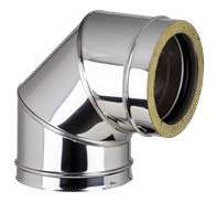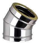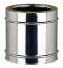 Il sistema “Doppia Parete ECO 25” è composto da elementi componibili rigidi con finitura lucida BA, Rame, o verniciatura nera RAL siliconica. Gli elementi sono realizzati con parete interna in acciaio inox AISI 316L (1.4404) di spessore 0,5 mm per i diametri Interni 80-100-130-150-160, e in spessore 0,6 mm standard di serie a partire dal diametro 180 interno fino a quelli maggiori. La parete esterna in acciaio inox AISI 304, conforme agli standard previsti dalla marcatura CE secondo la normativa EN 1856/1. La coibentazione è realizzata in lana minerale, alta densità spessore 25 mm, da blocco pressato per gli elementi lineari, e insufflata ad alta densità per gli elementi di connessione e accessori, tramite macchinari di ultima generazione. Gli elementi interni hanno un innesto a bicchiere maschio-femmina con sede della guarnizione a triplo labbro. Per la parete esterna è utilizzato un incastro a tenuta meccanica tramite l’utilizzo della fascetta di giunzione.